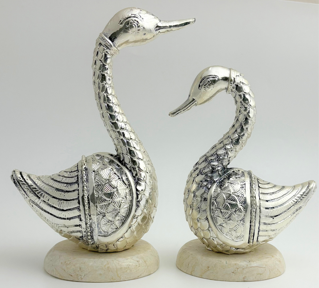999 Pure Silver Foil work Togetherness Swan pair for Gifting