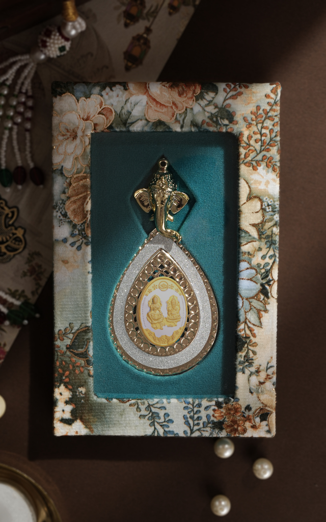 Pure silver 5 grams Oval Shape Laxmi and Ganesh Silver coin with 22 kt gold
